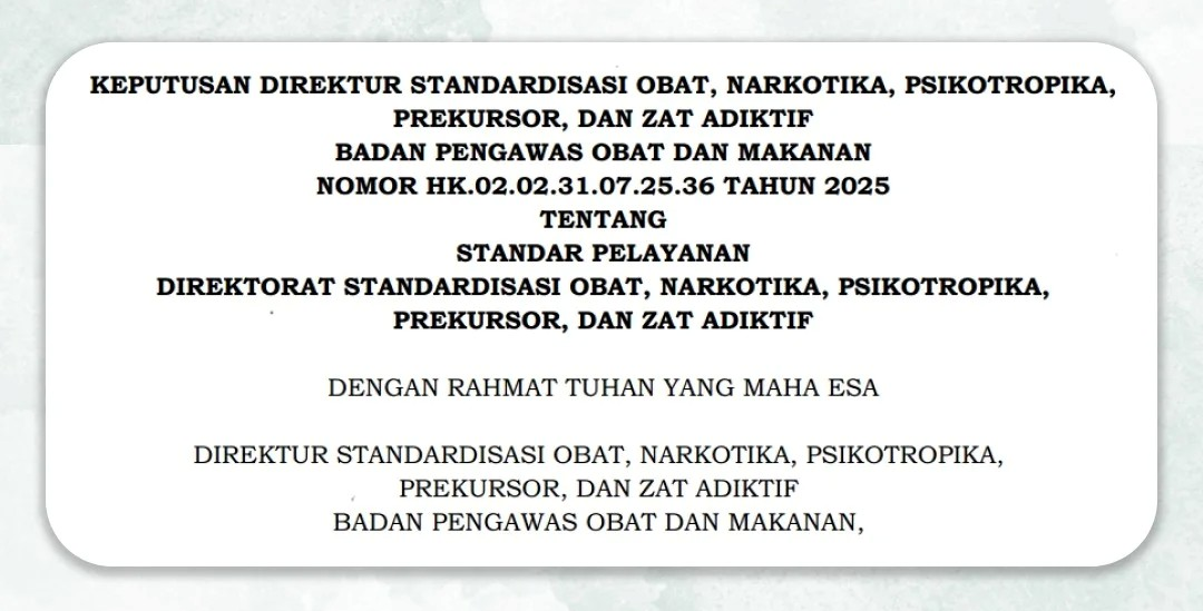 DokumenEksternal Pelayanan Konsultasi terkait Norma, Standar, Prosedur dan Kriteria (NSPK) di Bidang Obat, NPPZA 24/07/2025 adminPDJabar UNDUH DOKUMEN